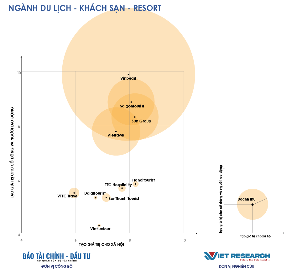 Within the framework of the National Research Program on Vietnam's Leading Value-Creating Enterprises, Viet Research in collaboration with the Finance - Investment Newspaper (Ministry of Finance) announced the Top 10 Vietnam's Leading Value-Creating Enterprises 2025 - Tourism - Hotel - Resort Industry. These are pioneering businesses in creating value for the economy and society, demonstrated through: scale and growth rate; profit and contribution to the budget; environment, policy and labor welfare; commitment to ESG and innovation.