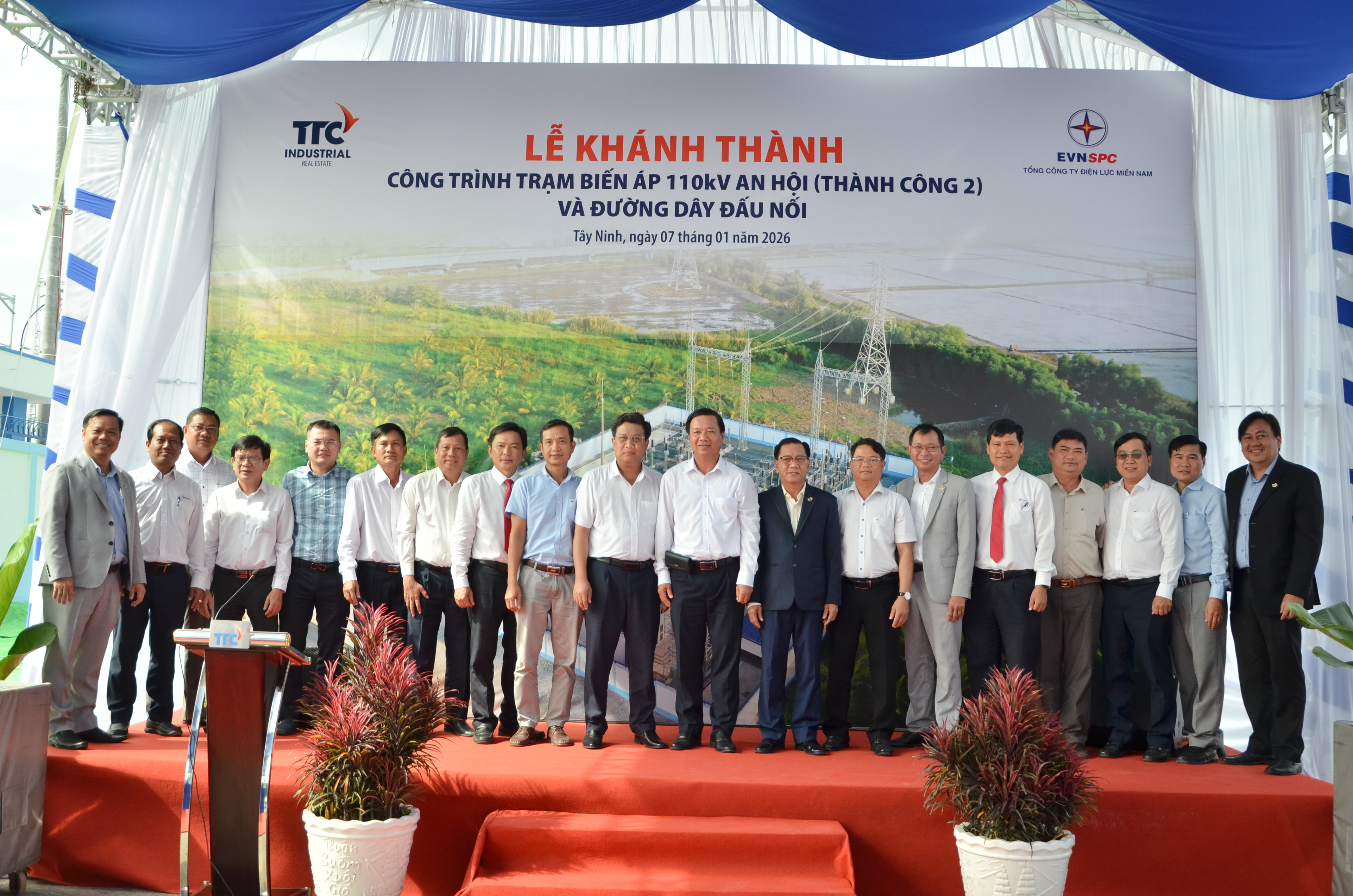 Ngày 07/01/2026, tại KCN Thành Thành Công, Tổng Công ty Bất động sản Công nghiệp Thành Thành Công (TTC IZ) phối hợp cùng Tổng Công ty Điện lực miền Nam (EVNSPC) long trọng tổ chức Lễ khánh thành công trình Trạm biến áp 110kV An Hội (Thành Công 2). Sự kiện đánh dấu cột mốc quan trọng trong việc hoàn thiện hạ tầng năng lượng, đáp ứng nhu cầu phụ tải ngày càng tăng và tạo nền tảng vững chắc cho sự phát triển bền vững của khu vực.