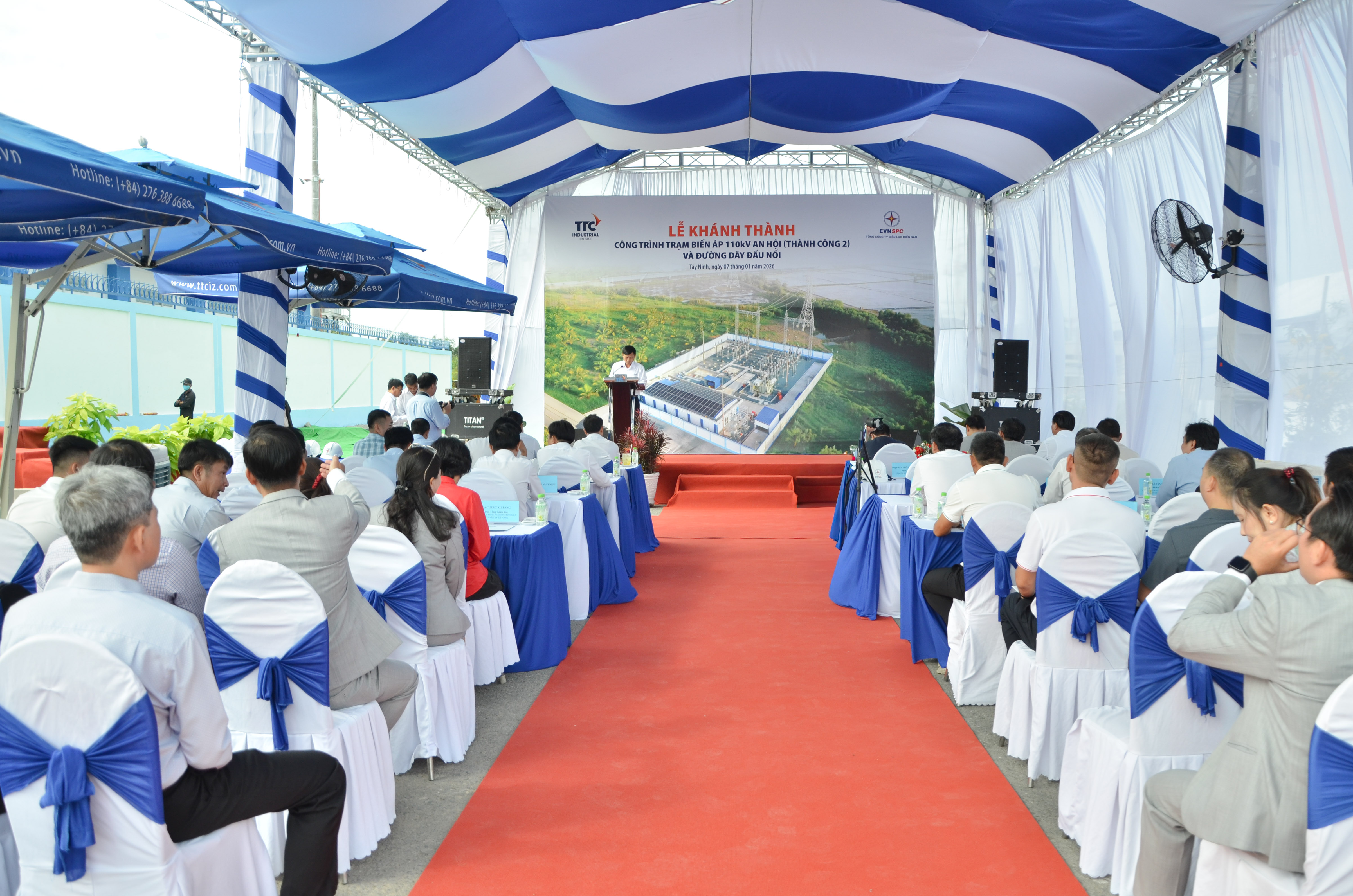 Buổi lễ vinh dự đón tiếp sự hiện diện của lãnh đạo các sở, ban, ngành tỉnh Tây Ninh; đại diện Tổng Công ty Điện lực miền Nam, Công ty Điện lực Tây Ninh; Ban Lãnh đạo TTC IZ và Qúy đối tác.