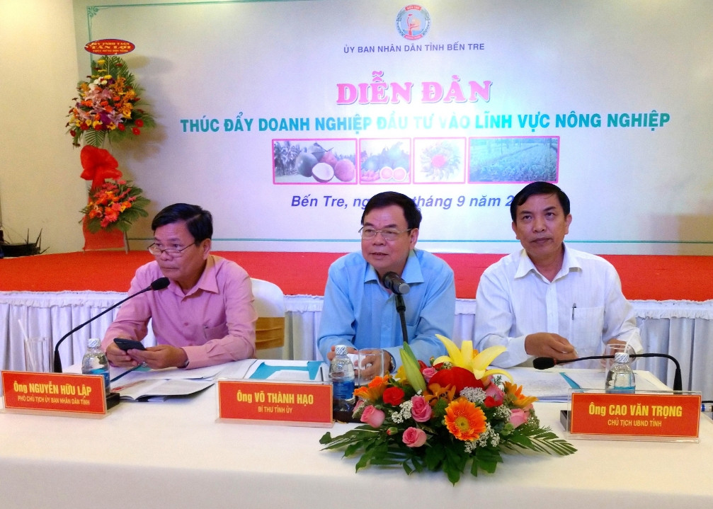 Theo báo cáo tại Diễn đàn, tính đến nay, toàn tỉnh Bến Tre có 451 doanh nghiệp đầu tư vào nông nghiệp, chiếm 17% tổng số doanh nghiệp đang hoạt động. Tổng vốn đăng ký của các doanh nghiệp đầu tư vào nông nghiệp chiếm 30% tổng số vốn đăng ký của doanh nghiệp trên địa bàn tỉnh Bến Tre, vốn bình quân mỗi doanh nghiệp khoảng 20 tỷ đồng.