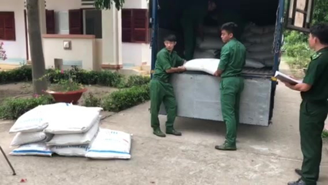 Cán bộ, chiến sĩ Đồn Biên phòng Vĩnh Ngươn đang kiểm đến tang vật đường cát Thái Lan nhập lậu bị lực lượng phối hợp bắt ngày 24/6/2018