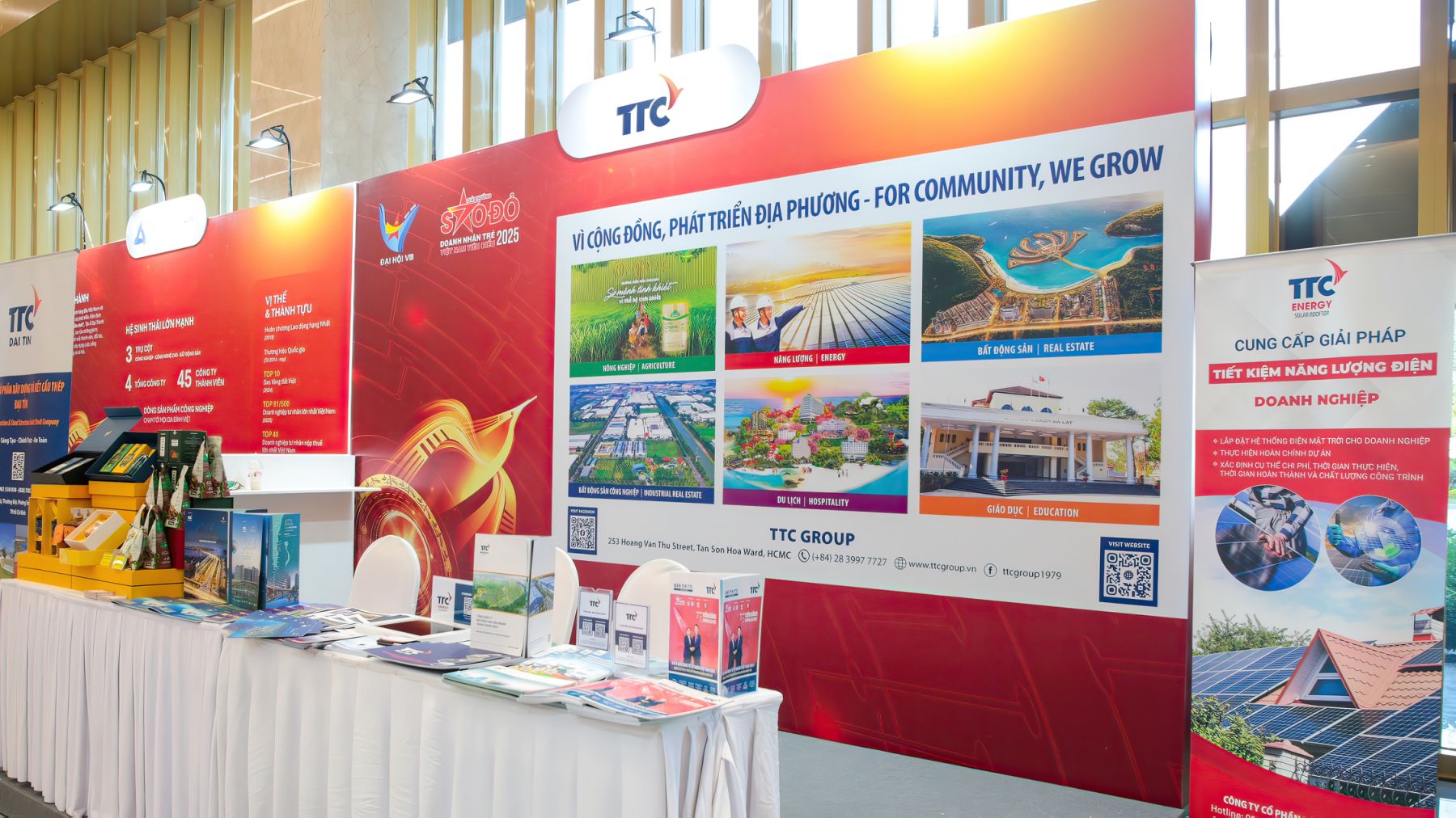 Tại sự kiện, Tập đoàn TTC tham gia trưng bày gian hàng giới thiệu hệ sinh thái đa ngành: năng lượng, du lịch, bất động sản, nông nghiệp, giáo dục, logistics – xây dựng – thương mại… Gian hàng TTC thu hút đông đảo doanh nghiệp và đối tác quan tâm, tìm hiểu và trao đổi định hướng hợp tác phát triển trong thời gian tới.